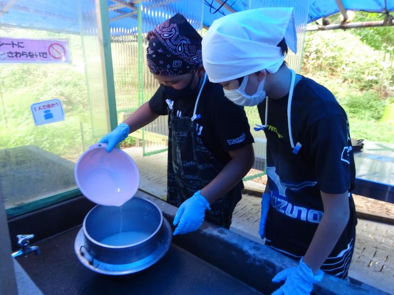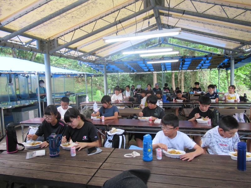 なんとか天候にも恵まれ,午前中は野外炊さん,午後はいかだ体験をしました。