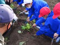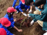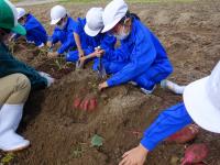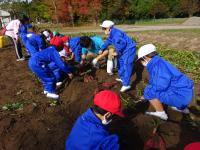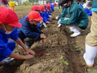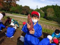 2021年11月1日 18時12分10月27日(水)、1・2年生が七尾東雲高等学校さんのお世話でさつまいも堀りの体験をさせていただきました。大きなさつまいもを大事に大事に掘りおこしていました。さらに、他の野菜やお花、果物も見せていただきました。東雲高校の皆様、本当にありがとうございます。