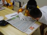 文字グループは,どこの部屋か誰でも分かるように平仮名・英語・点字を用いて掲示物を作ることに決めました。また,「点字ってどんな風に作ればいいんだろう。」「自分たちで作ることができるのかな。」と悩んでいる中,家に点字器がある子が,学校に持って来てくれることになりました。