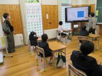 あさひ子ども園の先生方にも,児童たちが考えた10個の質問に答えていただきました。元気な声であいさつをしたり,質問をしたりすることができました。あさひ子ども園に通っていた児童もおり,懐かしい様子で園内を見渡していました。その後は,あさひ子ども園の子どもたちと一緒に縄跳びをしたり,ダンスをしたりしました。初めは少し照れくさそうにしていましたが,縄跳びのコツや縄の結び方を教えてあげたり,一緒に喜んでいたりする姿も見られました!