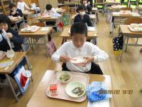 2022年1月28日 13時47分給食週間の期間中である1月27日(木)、七尾東雲高等学校さんから頂いたお米で炊いたご飯を給食で食べました。七尾東雲高等学校さんは、日本初の世界農業遺産に登録されたことを機に棚田保護活動と棚田米の評価向上に10年間取り組んでこられました。本年度は、農業系列の2年生が栽培したお米が、11月に静岡県小山町で開催された。「全国農業高校お米甲子園2021」で県内の高校として初めて「最高金賞・日本一」を受賞されました。そのお米を本校の子どもたちに「食と農」の結びつきを身近に感じてもらいたいと給食に提供してくださいました。子どもたちはお米の味を噛みしめながら、七日炊きごぼう(七尾に昔から伝わる料理)と一緒に食し、違いを感じ取っていました。どのクラスもご飯の食缶は空でした。