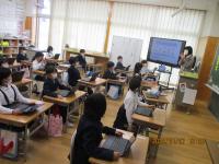 4年生は2学期末から「石川県の伝統工芸のよさを伝えるリーフレット」を作っていました。社会の学習ともつなげながら,石川県にはどのような伝統工芸があるのか調べ,さらに一人一人が興味を持った伝統工芸をくわしく調べ,よさを伝えるリーフレットを作りました。そのリーフレットを静岡県磐田市立東部小学校4年生と交流する約束をしていました。