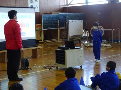 「みんなが生きている間におこるだろう言われている南海トラフ巨大地震のときに生かしてほしい」という熱いメッセージの時には,子どもたちの表情はとても真剣でした。
