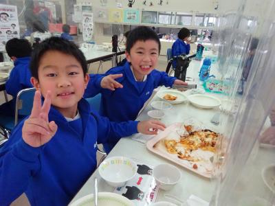 食べた子どもたちの第一声は,「おいしい~」でした。ピザのほかにスープ・ゼリーもいただき子どもたちはおなかいっぱいとても満足そうでした。