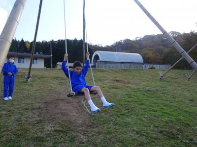 昼食後は,天気もとてもよく元気いっぱい外遊び。シーソーやハイジのブランコ,そり遊びを楽しみました。