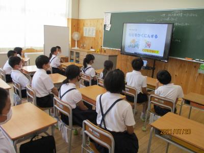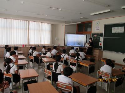 2021年8月5日 15時28分8月5日(木)全校登校日でした。オンラインによる集会、平和集会を実施しました。その後、各教室で平和に関する読み聞かせなどが行われました。