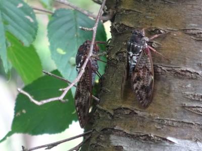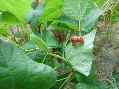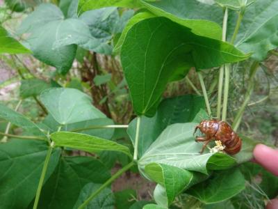 2021年8月4日 12時58分明日8月5日(木)全校登校日です。児童玄関前の植物にせみの抜け殻をいくつも発見しました。そして、せみも・・・。