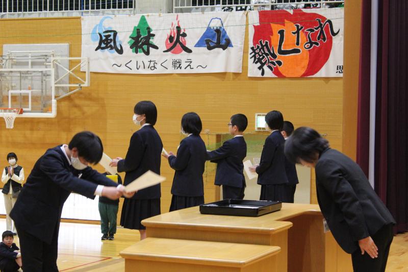 2024年10月22日 19時00分10月22日(火)に,後期児童会の任命式がありました。校長先生から朝日小学校を引っ張っていくリーダーに,任命書が渡されました。その後,全校児童の前で決意を語りました。他の児童たちも真剣に話を聞き,「よろしくお願いします。」と返事をしていた姿から,みんなで朝日小学校を創り上げるという姿勢が感じられました。