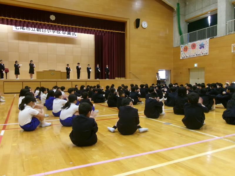卒業生の起立・礼・着席・姿勢・声の大きさ・返事・言葉・歌。どれも大変立派で,6年間の成果が表れていました。
