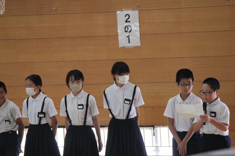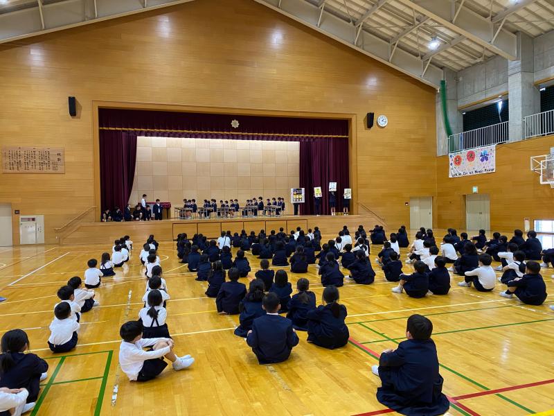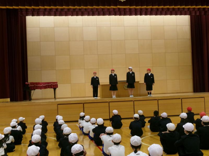 1~5年生は真剣な表情で,6年生の話を聞いていました。