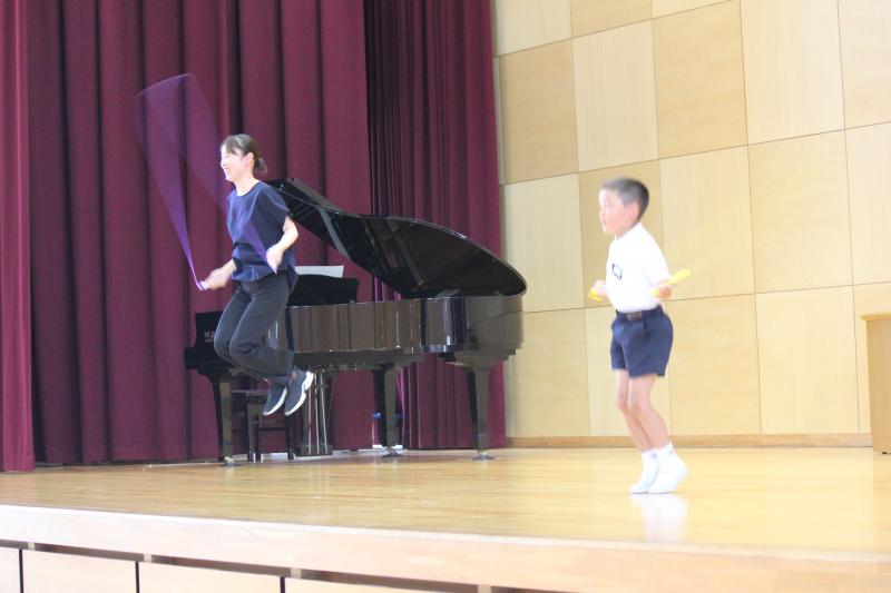 今回から,代表委員会による「みんなで笑顔になろう わくわくコーナー」という企画がスタートしました!朝日っ子の得意なことや好きなことを披露し,みんなで楽しく笑顔になることが目的です。ダンス・ピアノ・縄跳び・歌など,様々な学年から発表者が出て,大盛り上がりでした。発表者はもちろん,見ている朝日っ子も笑顔いっぱいでした!友達の新たな素敵なところを発見し,「すごいね!」「すてきだったよ!」と声を掛け合っているのが印象的でした!