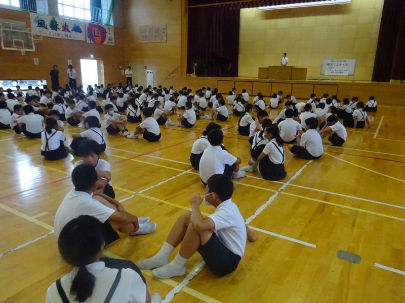 2023年7月21日 18時30分7月20日(木)1学期の終業式が行われました。校長先生のお話では,全員で頑張ったことを出し合い,1学期の活動を振り返っていました。1学期の経験を生かして2学期の活動,行事も頑張って欲しいです。また,終業式の後にALTのブリアン先生とのお別れの会が行われました。どの学年もブリアン先生のおかげで外国語を楽しく学習することができたことに感謝の気持ちを伝えていました。