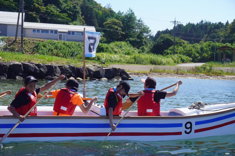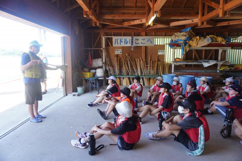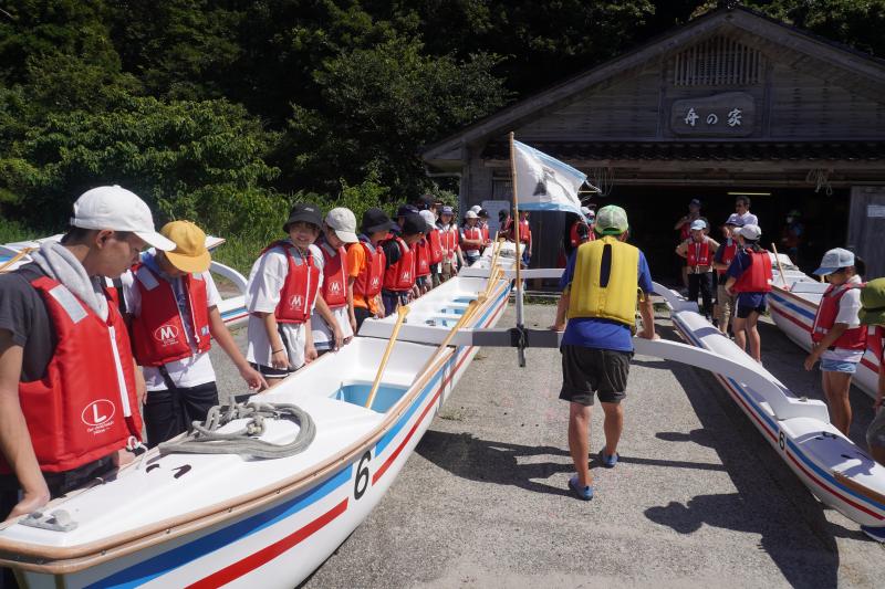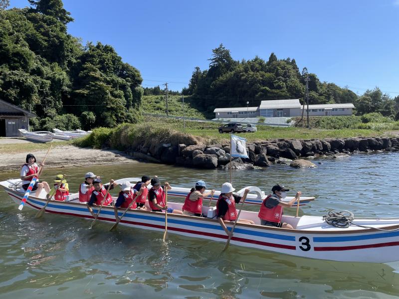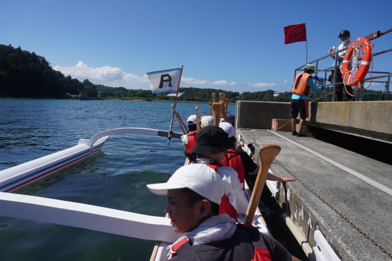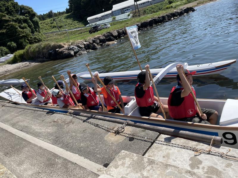 説明を聞き,まずはカヌーを運ぶところからスタート。全員で協力して3隻海に出すことができました。また,海に出てからは,グループごとにかけ声に合わせて一斉に漕ぎ,湾内を一周することができました。