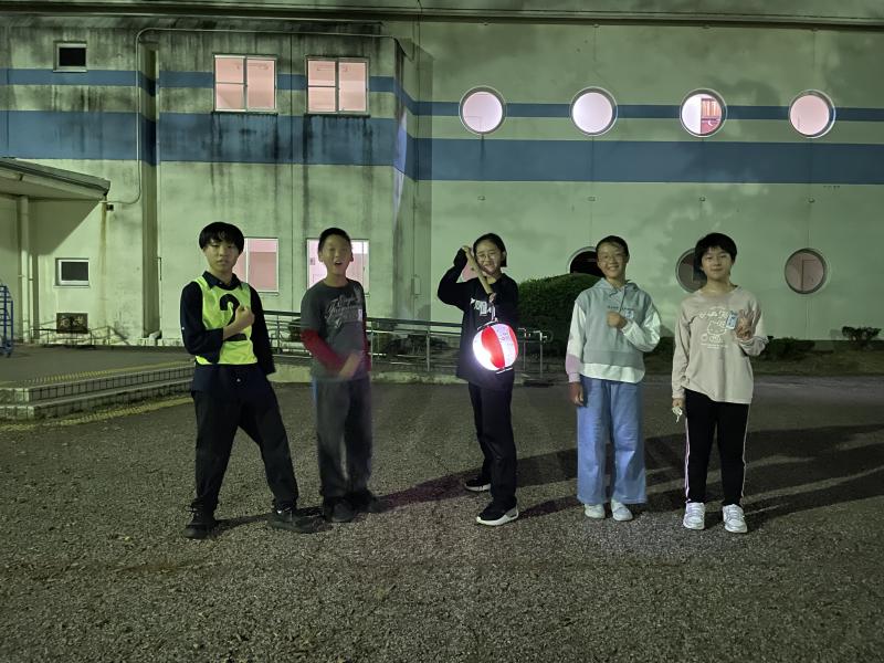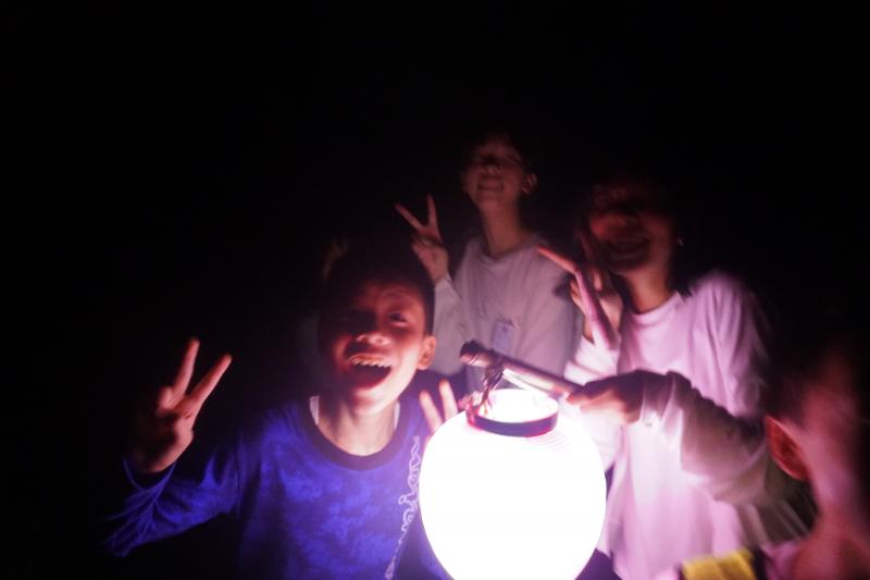 きもだめしでは,怖い映像を全員で視聴してから,グループに分かれて,暗い山道を提灯を持って歩きました。怖がりながらもグループごとに声をかけ合いながら,時にはグループを合体しながら全員が無事ゴールすることができました。