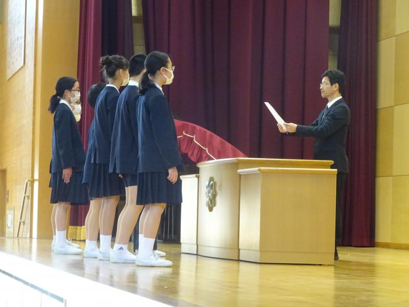 2025年10月28日 17時00分10月23日(木)、後期児童会役員・委員長の任命式がありました。