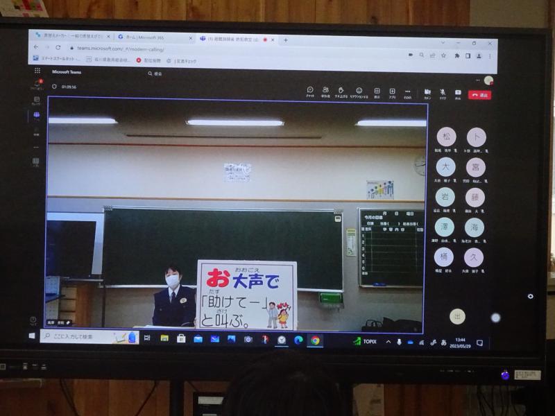 2023年5月30日 18時05分5月29日(月)不審者対応での避難訓練がありました。不審者が校内に侵入した状況での児童と教職員の動きを確認し,警察官の方にチェックしていただきました。また,訓練後の警察官のお話では,校内だけでなく,一人の時に不審者に遭遇した時のための合言葉として「いか・の・お・す・し」という言葉を教えてもらいました。火災の時に引き続き,一人の時でも自分の身を守ることができる行動を考え,実行できるといいですね。