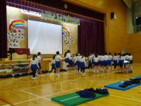 体育館は今も立ち入り禁止のため,できていなかった体育ですが,玄関スペースを広くしたり,会議室の物を動かしたりして少し広い場所を確保し,再開しました体育館用具庫から,玄関スペースでも使えそうな用具を先生達で相談して出してきました。マット,ラダー,なわとびなど,いつもの体育よりも大きな動きはできませんが,体を動かすことができると気持ちも晴れやかになりますね体育の最初にしている体つくり運動も,久々でしたが,3年生とても上手でした友達と一緒にタイミングを合わせてなわとびを跳ぶのもバッチリおみごとです