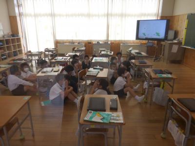 2021年5月19日 14時23分5月18日(火)幼保園の先生方が1年生の生活科の学習の様子を参観されました。1年生は、朝顔の種やお世話の様子を伝え合いました。「自分の朝の様子を見たい」と外に出たのですが、調度雨が降ってきたため、観察時間が短くなりましたが。しかし、撮影してあった写真から、芽が出る様子をしっかりと表現していました。