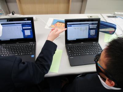 4年生は2学期末から「石川県の伝統工芸のよさを伝えるリーフレット」を作っていました。社会の学習ともつなげながら,石川県にはどのような伝統工芸があるのか調べ,さらに一人一人が興味を持った伝統工芸をくわしく調べ,よさを伝えるリーフレットを作りました。そのリーフレットを静岡県磐田市立東部小学校4年生と交流する約束をしていました。