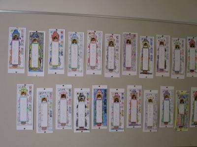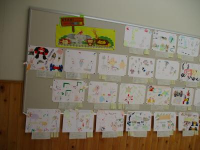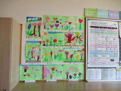 1年生,どの授業もやる気まんまん!図工の「にょきにょきとびだせ」では,いろいろなものが飛び出して,楽しい作品ができました