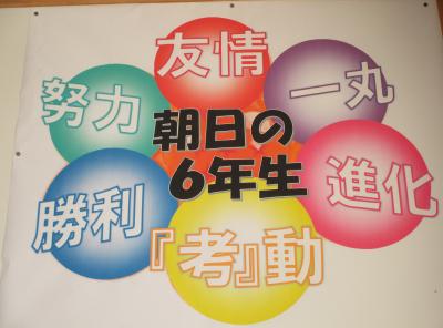 朝日小学校は,惜しくも得点を挙げることはできませんでしたが,5年生みんなで決めためあて「勝っても負けても悔いが残らない試合をしよう」は,達成できたと思います。応援もみんなで大声をあげてしていたのがとてもよかったです。応戦してくださった,6年生,お家の方々,ありがとうございました。
