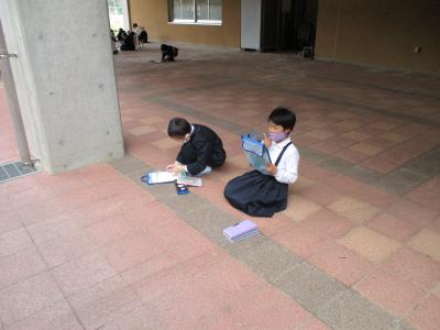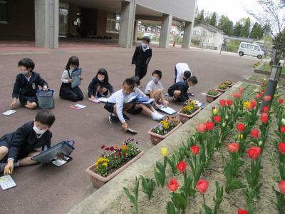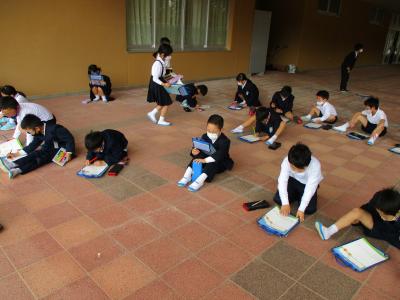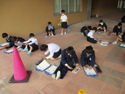 2021年4月13日 15時57分4月9日(火)2年生が「はるみつけ」に外へ出ました。チュッリップやタンポポの絵をかいていると、雨が降ってきました。すばやく玄関前のピロティへ移動後、はるみつけのシートをかき続けていました。