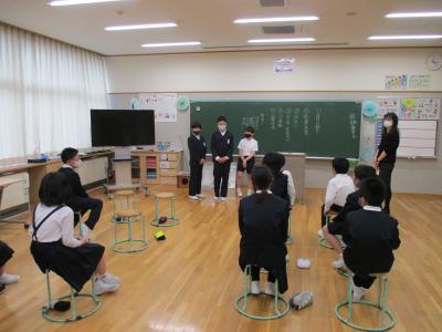 あさひ子ども園の先生方にも,児童たちが考えた10個の質問に答えていただきました。元気な声であいさつをしたり,質問をしたりすることができました。あさひ子ども園に通っていた児童もおり,懐かしい様子で園内を見渡していました。その後は,あさひ子ども園の子どもたちと一緒に縄跳びをしたり,ダンスをしたりしました。初めは少し照れくさそうにしていましたが,縄跳びのコツや縄の結び方を教えてあげたり,一緒に喜んでいたりする姿も見られました!