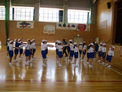 体育館は今も立ち入り禁止のため,できていなかった体育ですが,玄関スペースを広くしたり,会議室の物を動かしたりして少し広い場所を確保し,再開しました体育館用具庫から,玄関スペースでも使えそうな用具を先生達で相談して出してきました。マット,ラダー,なわとびなど,いつもの体育よりも大きな動きはできませんが,体を動かすことができると気持ちも晴れやかになりますね体育の最初にしている体つくり運動も,久々でしたが,3年生とても上手でした友達と一緒にタイミングを合わせてなわとびを跳ぶのもバッチリおみごとです