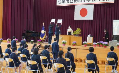 2021年3月19日 09時52分3月18日(木)天候にも恵まれ、第3回令和二年度の卒業証書授与式を行うことができました。コロナ対策のため、式への直接の参加は卒業生、保護者、5年生のみでしたが、1年生から4年生そして先生方はオンラインで式の様子を見ながら、卒業を祝い見守りました。6年生は卒業式当日も最後までしっかりやり切ってくれました。入場から退場まで、下級生の手本となる行動でした。本当に凄い‼ 5年生は在校生代表として卒業を見届け、次は僕たちの番と心新たにしたようです。