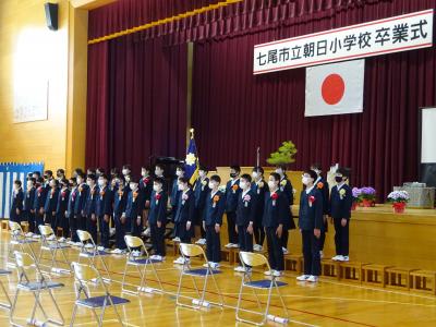 卒業生の起立・礼・着席・姿勢・声の大きさ・返事・言葉・歌。どれも大変立派で,6年間の成果が表れていました。
