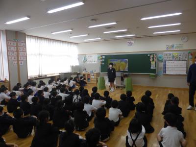 七尾警察署の方と一緒に,合言葉である「いかのおすし」の確認をしました。また,児童参加によるデモンストレーションも行いました。自分事として捉え,考えることができました。