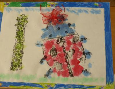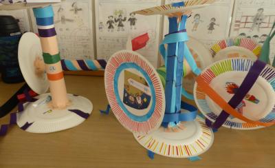 1年生,どの授業もやる気まんまん!図工の「にょきにょきとびだせ」では,いろいろなものが飛び出して,楽しい作品ができました