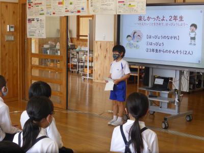 相手に喜んでもらおうと一生懸命考え,行動したこの経験は,また4年生の心を大きく成長させてくれたと思います。優しい声かけ,気遣いなど,素敵な姿がたくさん見られた交流会でした。