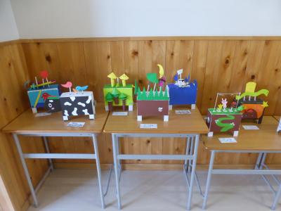 1年生,どの授業もやる気まんまん!図工の「にょきにょきとびだせ」では,いろいろなものが飛び出して,楽しい作品ができました