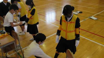 そして,今日から簡易給食がスタートしました。初日はおにぎりと牛乳とデザート。みんなで久しぶりに一緒にお昼ご飯を食べて,うれしかったです