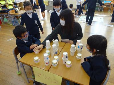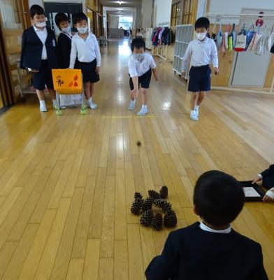 2020年11月30日 11時26分11月27日(金)1年生による[あきのおもちゃパーク]が開催されました。2年生と先生方が招待されました。1年生は、みんなに楽しんでもらおうと、秋の木の実など工夫してお店を開いていました。楽しかったよ。