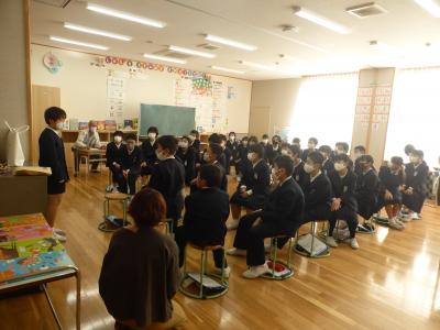 あさひ子ども園の先生方にも,児童たちが考えた10個の質問に答えていただきました。元気な声であいさつをしたり,質問をしたりすることができました。あさひ子ども園に通っていた児童もおり,懐かしい様子で園内を見渡していました。その後は,あさひ子ども園の子どもたちと一緒に縄跳びをしたり,ダンスをしたりしました。初めは少し照れくさそうにしていましたが,縄跳びのコツや縄の結び方を教えてあげたり,一緒に喜んでいたりする姿も見られました!