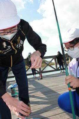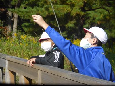 2020年10月30日 09時09分10月29日(木)、6年生は鹿島少年自然の家で体験活動を行いました。午前中は追跡ハイキング、午後は魚釣りの活動を楽しみました。追跡ハイキングでは、全部回ってゴールしたグループが2組と地図を見て歩く課題も見えたようです。魚釣りでは、糸を絡ませる事も少なく、協力して活動できたようです。天候にも恵まれ、よい時間となりました。