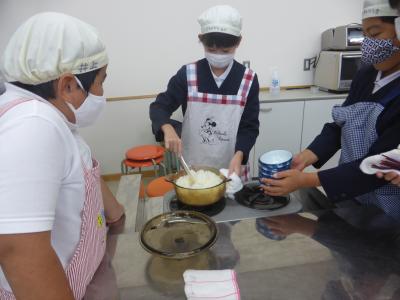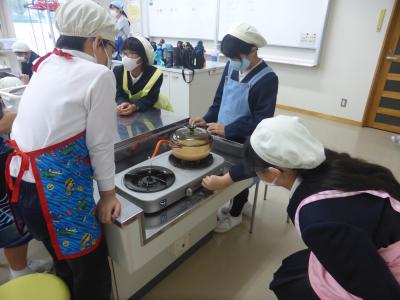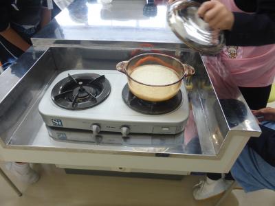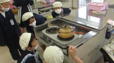 2020年11月4日 13時53分11月2日(月)5年生が家庭科でごはん炊きに挑戦しました。お米が炊けていく様子が見えるガラスの鍋で炊きました。5年生は炊きあがったごはんを、「おいしい、おいしい」と言いながら試食していました。