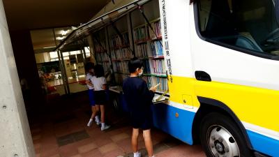 2020年10月12日 13時16分ひと月に2回、市立図書館から本とも号さんが来てくれます。1回は1・3・5年生が、もう1回は2・4・6年生が本を借ります。