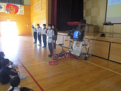2020年10月16日 18時02分10月16日、七尾自動車学校と七尾警察署の方々のご協力で自転車教室を実施しました。今回は七尾自動車学校さんが学校に来てくださる出前授業の形で行いました。3年生は、自転車は車の仲間である事や自転車に乗る時に守る事など、しっかり学ぶことができました。