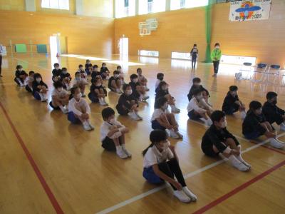 体育館は今も立ち入り禁止のため,できていなかった体育ですが,玄関スペースを広くしたり,会議室の物を動かしたりして少し広い場所を確保し,再開しました体育館用具庫から,玄関スペースでも使えそうな用具を先生達で相談して出してきました。マット,ラダー,なわとびなど,いつもの体育よりも大きな動きはできませんが,体を動かすことができると気持ちも晴れやかになりますね体育の最初にしている体つくり運動も,久々でしたが,3年生とても上手でした友達と一緒にタイミングを合わせてなわとびを跳ぶのもバッチリおみごとです