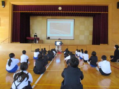 七尾警察署の方と一緒に,合言葉である「いかのおすし」の確認をしました。また,児童参加によるデモンストレーションも行いました。自分事として捉え,考えることができました。