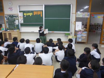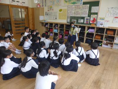 2020年10月22日 13時31分9月から月に1回、校内で読み聞かせを行っています。9月は担任が行いました。10月からは担任以外の先生が読み聞かせを行います。今日は(10月22日)その初日でした。子ども達は、とても嬉しそうでした。