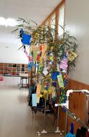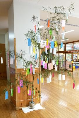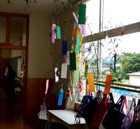 2020年7月8日 17時17分昨日は七夕。校内には、玄関をはじめ各教室に願いがつるされた七夕飾りが並びました。願いが叶うといいね。
