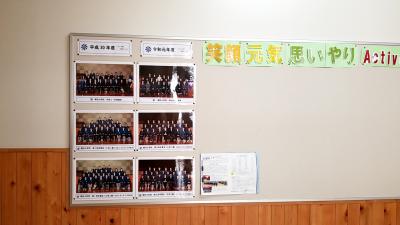 2020年5月14日 11時01分今朝、出勤途中、毛虫が道路を渡っているのを見ました。毎年の光景です。毛虫も動き始めたようですね。職員室前の廊下に平成30年度(第1回)と令和元年度(第2回)卒業生と職員の写真を掲示しました。