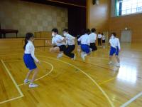 体育館は今も立ち入り禁止のため,できていなかった体育ですが,玄関スペースを広くしたり,会議室の物を動かしたりして少し広い場所を確保し,再開しました体育館用具庫から,玄関スペースでも使えそうな用具を先生達で相談して出してきました。マット,ラダー,なわとびなど,いつもの体育よりも大きな動きはできませんが,体を動かすことができると気持ちも晴れやかになりますね体育の最初にしている体つくり運動も,久々でしたが,3年生とても上手でした友達と一緒にタイミングを合わせてなわとびを跳ぶのもバッチリおみごとです