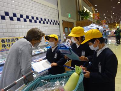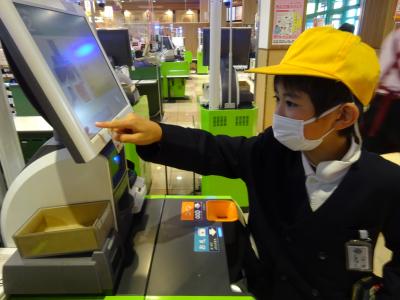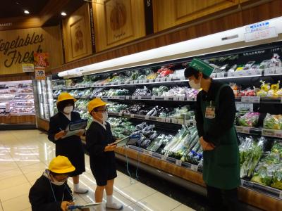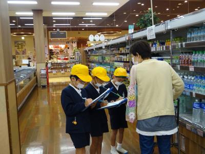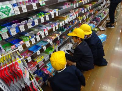 300円でお買い物では,暗算をしながら子ども達は,楽しそうにお買い物をしていました。また,グループに分かれて,お客さんや働いている方にインタビューもしました。