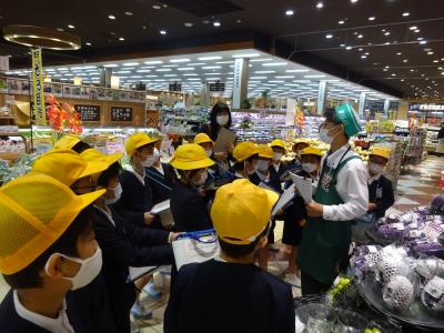 最後に店長さんにさまざまな質問に答えていただきました。一番高い商品を聞いたところ,どんたくでは,びっくりするほど高いものもありました。その他,商品の種類やお客さんがたくさん来る時間,入り口は,季節の品物を並べているなどたくさん学ぶことができ,有意義な見学となりました。