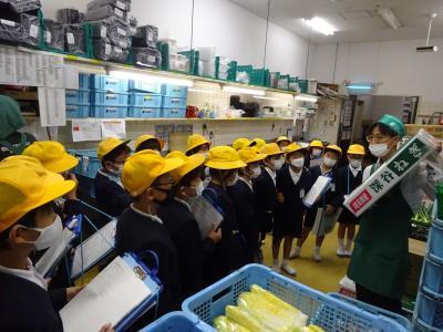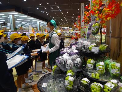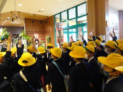 2022年10月17日 18時13分10月12日(水) どんたくアスティ店に社会科見学に行きました。スーパーマーケットの売り場の様子や働く人の様子について,また,お客さんのためのさまざまな工夫があることを沢田店長さんのお話を聞きながら学習しました。普段は決して見ることができない野菜・果物・魚・肉などのバックヤードも見せていただきました。店内見学の途中では,ピザ生地を高く回している実演も見ることができて子ども達は歓声をあげていました。